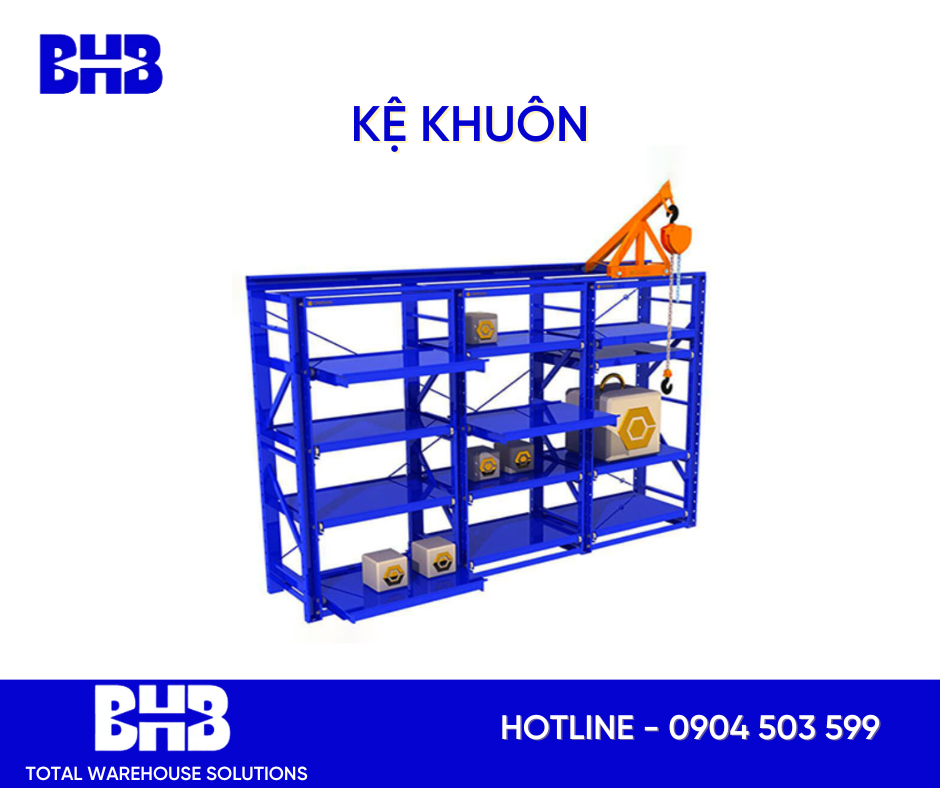 Kệ khuôn là kệ hạng nặng, kệ công nghiệp sử dụng các khuôn mẫu để hàng hóa có tải trọng lớn từ 500kg đến 2000kg/ tầng sàn. Kệ dễ dàng lắp ráp, lấy hàng vì có thanh ray trượt hỗ trợ.