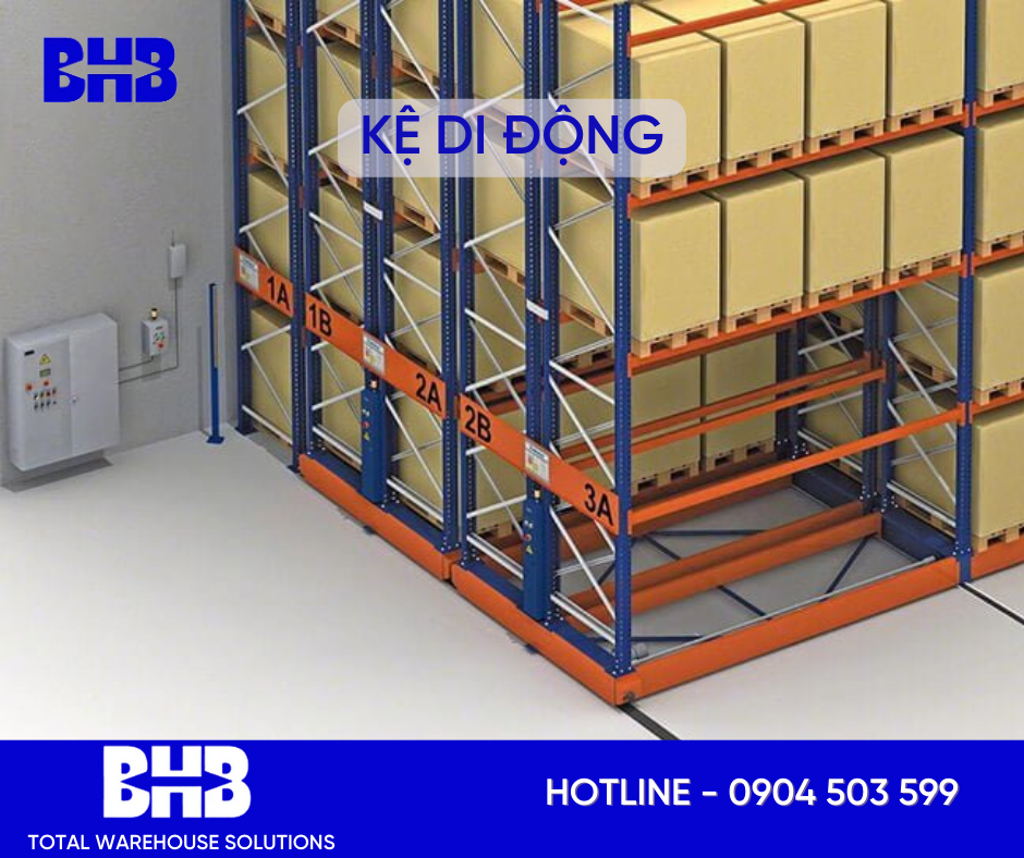 Kệ di động phù hợp với hệ thống kho mà không cần sử dụng đến nhiều lối đi, cũng như không phải để tâm đến việc lưu chuyển hàng hóa bằng các loại xe nâng, thiết bị hỗ trợ. Đây là hệ thống kho cực kì thông minh và hiện đại trong các loại kệ sắt để hàng nặng hiện nay.