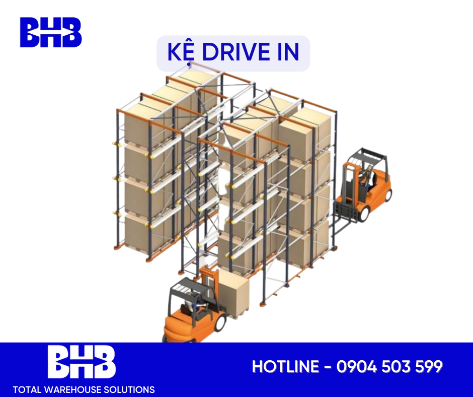 Sử dụng kệ drive in có thể tiết kiệm được tối đa diện tích cho nhà kho, nhưng chỉ dành cho kho hàng dùng chung một loại pallet đồng nhất. Đây chính là một điểm hạn chế của loại kệ này.