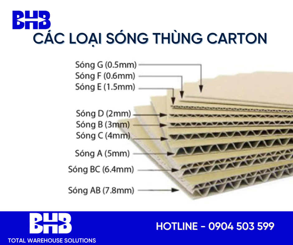 Thông thường nhất thì thùng carton 3 lớp được làm từ loại sóng A và sóng C, nhưng theo nhu cầu sử dụng và đặc điểm hàng hóa có thể dùng sóng B hoặc C nếu cần độ cứng cao.