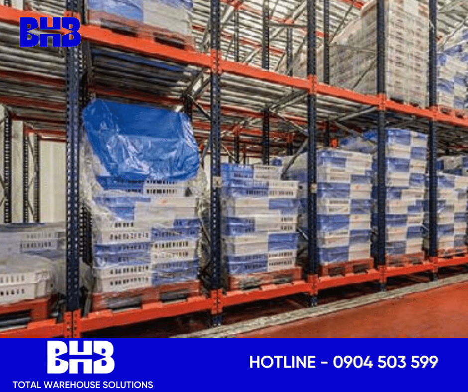 Sử dụng kệ chứa hàng giúp tiết kiệm không gian lưu trữ một cách hiệu quả